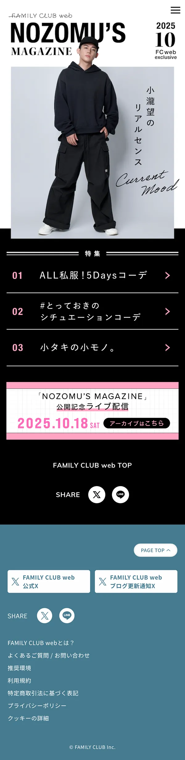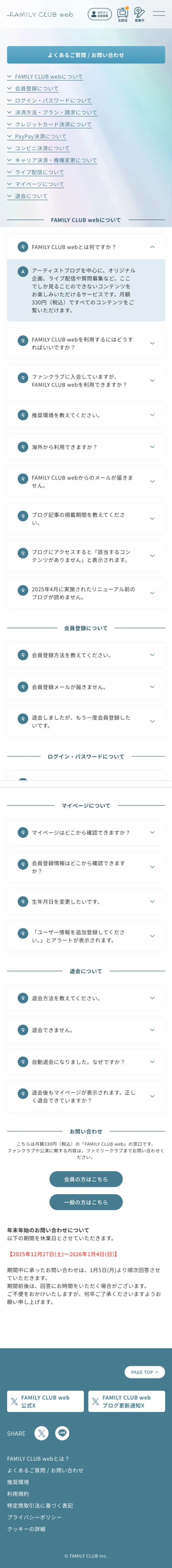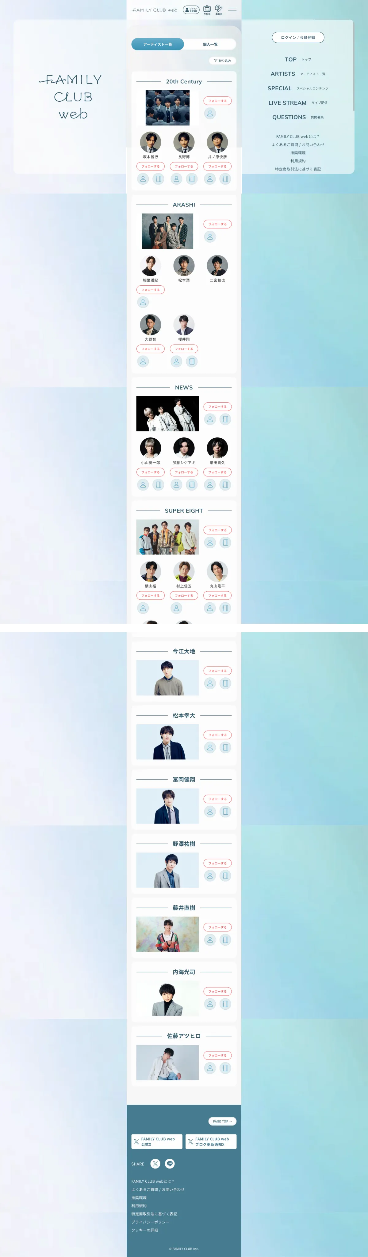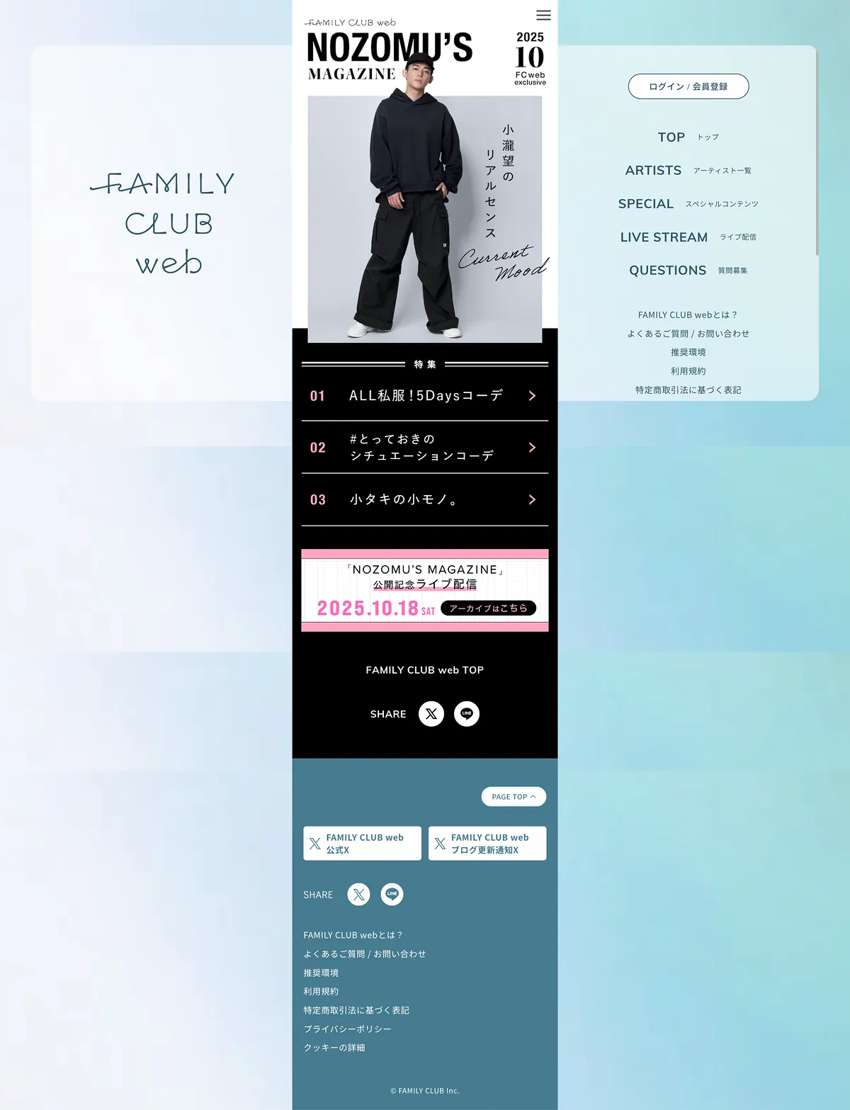 FAMILY CLUB webとは、アーティストブログを中心に、オリジナル企画、ライブ配信や質問募集など、ここでしか見ることのできないコンテンツをお楽しみいただけるサービスです。