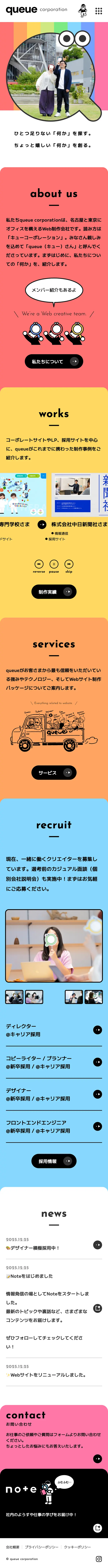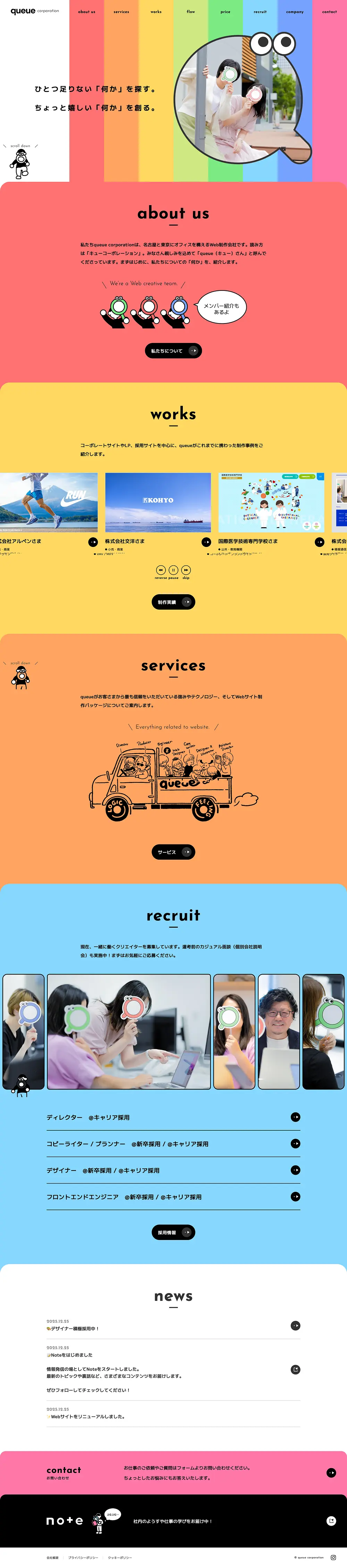 キューコーポレーション株式会社(queue corporation)は名古屋と東京でWebサイト・ホームページ制作を行なう会社です。LPやコーポレートサイトを中心に企画から制作まで一貫して対応いたします。