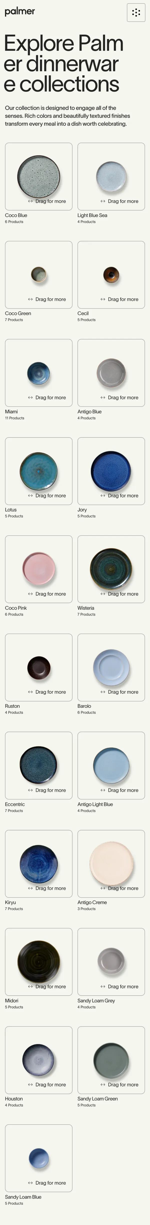 Indulge your senses with Palmer’s exquisite dinnerware collection. Designed to elevate every dining experience, our rich colors and textured finishes turn meals into celebrations. From Michelin-starred chefs to passionate home cooks, anticipate the finest seasonings with every dish. Taste with your eyes and savor the anticipation.