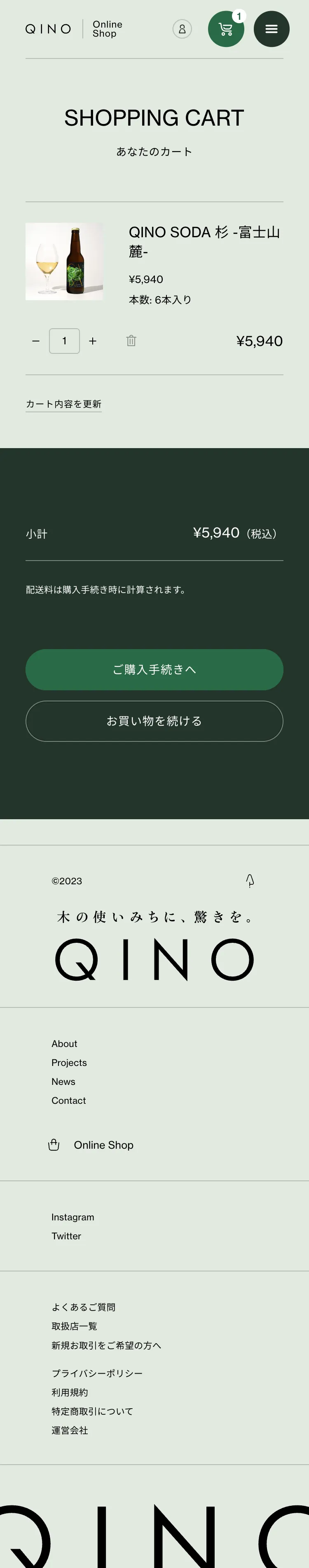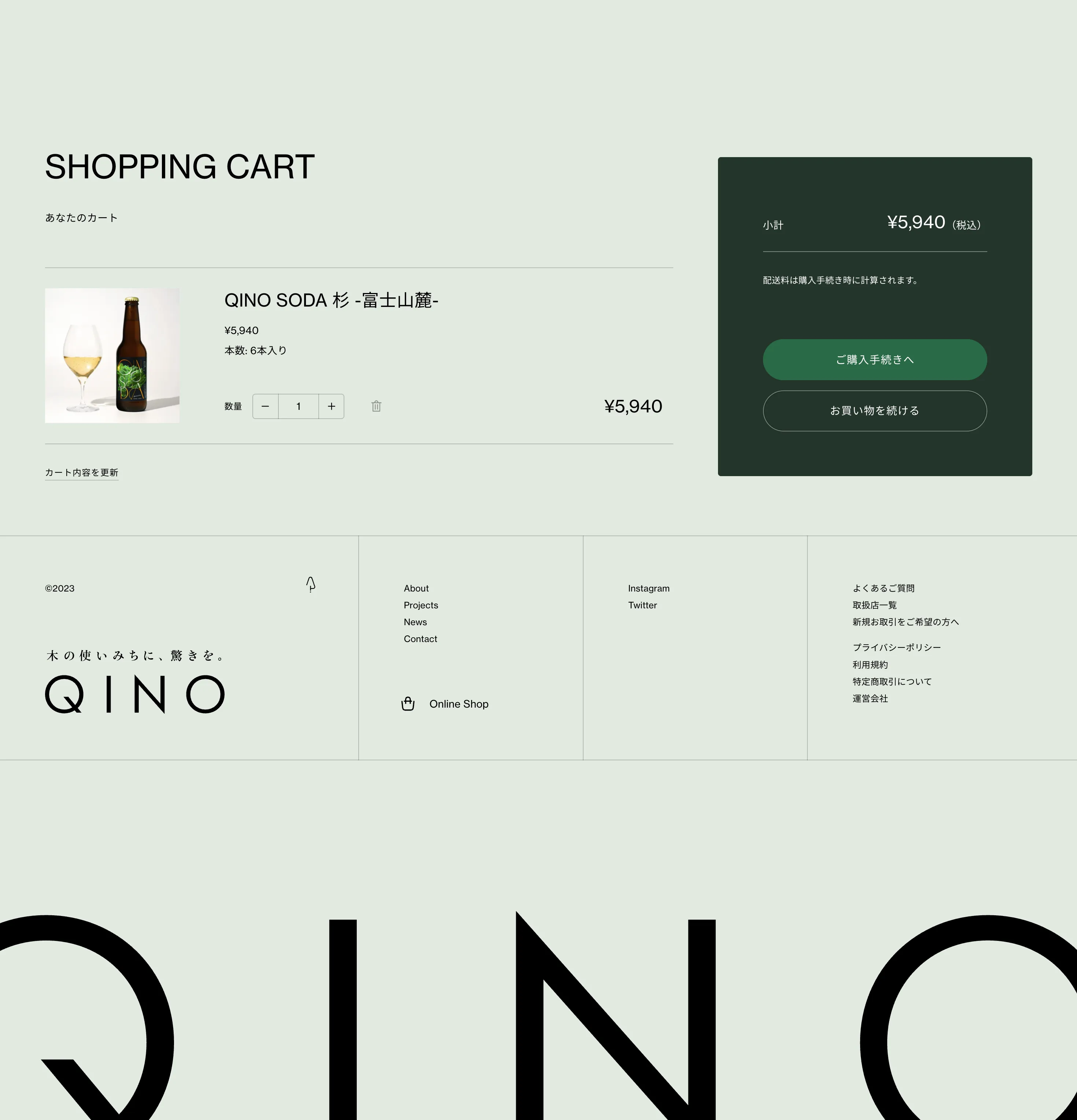 https://qino.jp/石川県白山麓から広がる地域共創プロジェクトです。「木を使い山を育て、水を守る。」をビジョンに、これまで森林環境へのエールになる製品や体験の開発を行ってきました。木のプレミアム炭酸水「QINO SODA」をはじめ、木をあじわい、水とひとつになる森のレストラン「QINO Restaurant」や、小学校での木育授業「QINO school」、そして未来の森づくりに向けたワークショップ「QINO Dialogue」などがあります。QINOはこれからも時間をかけて、人と山のかかわりしろが増えるアクションを実現していきます。